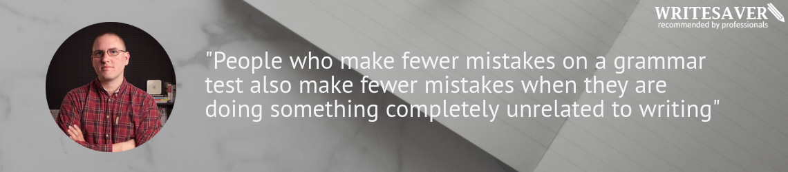 “Grammar signifies more than just a person’s ability to remember high school English. I’ve found that people who make fewer mistakes on a grammar test also make fewer mistakes when they are doing something completely unrelated to writing — like stocking shelves or labeling parts.”