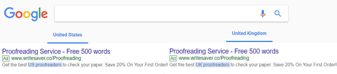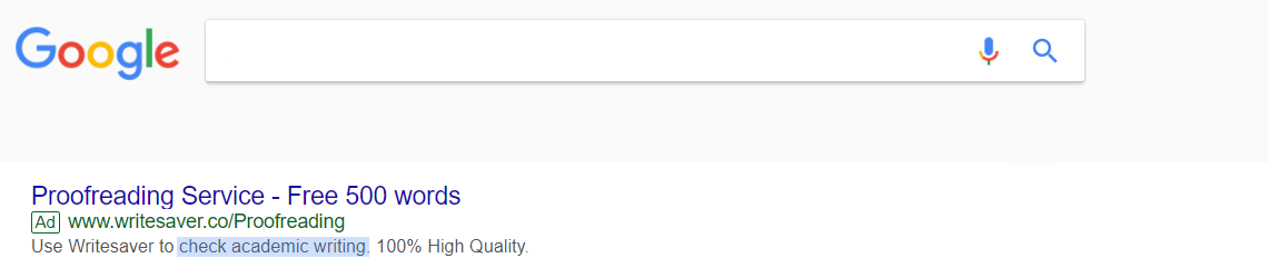 Numbers and ASCII characters make your ad stand out visually by splitting up text blocks. They grab the user’s attention and make him/her read the message. What’s more, ASCII characters save space for a couple of additional words. But don’t forget about Adwords requirements. Headlines such as Proofreading Service *FREE* 500 words may be rejected by moderators.